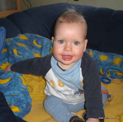 Er ist schon ein kleiner Dickkopf etwas hektisch (wenns nicht schnell genug geht kann ich in 3 Oktaphen schreien). Aber sonst sehr lieb. Lasse liebt seine Milchflasche die er regelm. alle 4 h einfordert. Hey Mama ich muss doch mein Gewicht ausbauen will doch der nächste Dirk Nowitski werden.Er will schon sitzten um die Welt von einem anderen Blick zu erkunden. Singen und erzählen kann er auch. Aber hat nicht immer dazu lust. Nach dem Essen immer hängloose angesagt, von schlafen aber nicht gesprochen gell.