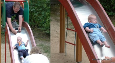 heute waren wir mit onkel holger und tante petra klar mit mama und papa zum erstenmal auf einen spielplatz uiuiuiui war das aufregend.wir sind gerutsch auf so einen langen ding. mama sagt rutsche dazu! papa hat lasse hihii einmal zu schnell rutschen lassen; die stirn hat gebremst aber nichts passiert was das bild bestätigt. danke nochmal tante und onkel für das schöne we und die tollen spielsachen, die wir kräftig einspeicheln dürfen sind ja jetzt unsere. vermissen euch jetzt schon wieder obwohl wir etwas gefremdelt haben, war aber nicht böse gemeint. :-)