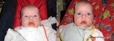 heute hatte mama tatendrang nein nicht aufpacken und los. da wir im moment so gute esser sind und schon 5 monate alt. hat sie uns ein leckers mittagessen gemacht. nein nicht immer die mili, die jetzt dicker ist und mehr sättigt nein es gab lecker gelben/orangen brei den man auch verschmieren kann mit den fingern und damit malen kann man auch.