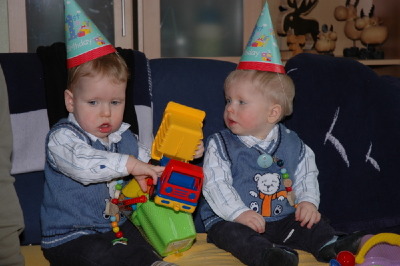 juhu es ist soooo viel passiert das glaubt ihr nicht. wissen garnicht was los war. also wir fangen mal an: am donnerstag 11.3 kam, was für eine freude, onkel holger mit tante petra und hund emilie. jetzt wissen wir warum, den am freitag den 12.03 war unser 1 geburtstag. viele geschenke, viel leckers essen ach ja die leute waren auch klasse. unsere erste party mit allem drum und dran meinte mama. mit hütchen, kerzen, wunderkerzen und tollen kuchen. leider geht die tolle spaßige zeit mit onkel holger und tante petra morgen zu ende. hier mal beweisbilder.