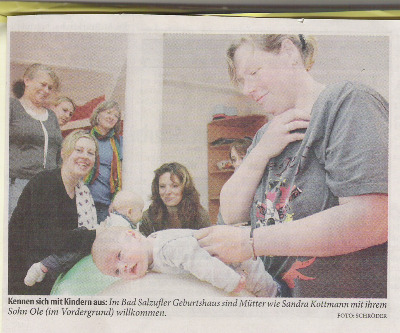 gestern waren wir wieder mit mama bei der gymnastik. mama musste schuften und wir genossen den babysitterservice. ich (ole) lag genüsslich in einer babyhängematte, mein bruder hatte pech und schlief und schlief leider im maxicosi. bevor mama mich fertig für die reise machen wollte kam ein mann mit einem ding das blitzte. mama meinte das war die lippische landeszeitung will ein bericht schreiben mit bild über die hebammenpraxis, wo mama gymnastik macht. was soll ich euch sagen da mein bruder alles verpennte kam ich auf die titelseite mit namen (grinnns). mama ist ganz stolz.