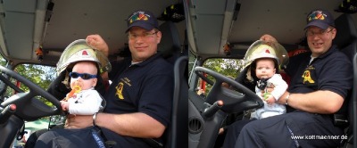 heute war für mama zwar die nacht kurz, da ich lasse nicht so gut oder kaum schlafen konnte. warum? fragt mich nicht, ich weis es auch nicht. aber wir hatten so einen spass am nachmittag, wir haben papa mit martina bei der tatütata besucht. tag des offenen fenster´s oder so. papa hat uns überall mit genommen auf die gaaaaaaaaaaaaaaaaaanz großen roten autos... juhuu. danach waren wir so kaputt vor aufregung das wir beim flasche trinken eingeschlafen sind.