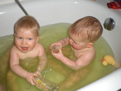 heute waren wir wieder plantschen nene nicht im großen wasser sondern im badeparadies zuhause. hat richtig spaß gemacht mit papa, wir waren sogar zusammen in der badewanne.