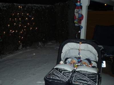 juhuuuuuuuuuu irgend was weisses fällt vom himmel. mama sagt es sei schnee. mama und papa haben uns aufgepackt und durch die nachmittagdämmerung mit schnee gelaufen. sehr schön war es.