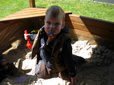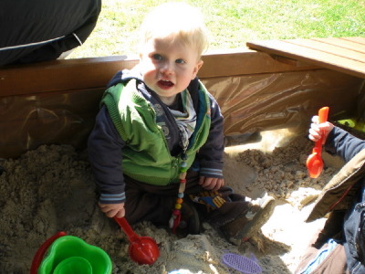 es wird frühling meinte mama und das glauben wir ihr. weil wir den ganzen tag im garten waren und durften in einem ding (sandkasten) mit was zu essen das zwischen den zähnen schnirscht spielen. mama sagt.... sand ist man nicht ...uns egal :-). macht so richtig spass darin zu wühlen.....